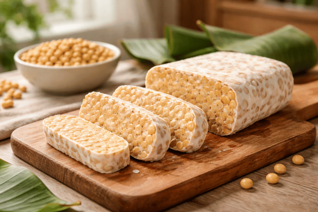 It’s a fermented cake where whole soybeans are bound together by a specific mold, Rhizopus oligosporus. The result is a firm block packed with plant protein and fiber.